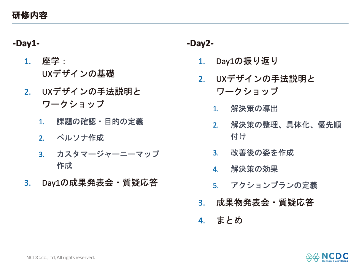今回NCDCが協力させていただいたUXデザインに関する教育は、どのような位置づけになりますか。