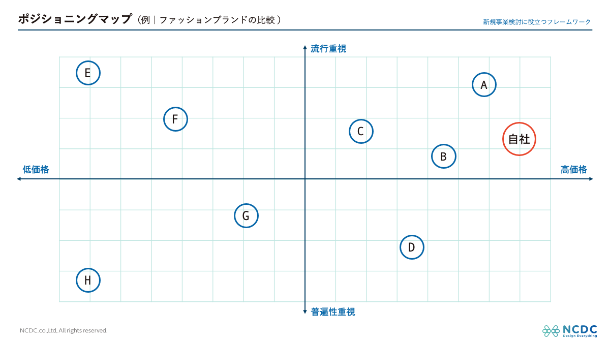 ポジショニングマップとは、ターゲットとなる顧客に提供できる価値から、市場における「優位性」を分析するフレームワークです。