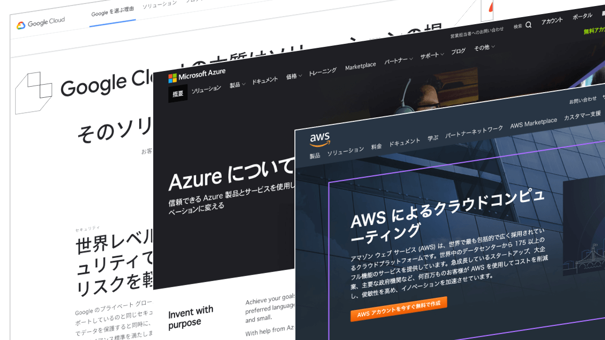 たとえば、アプリケーション用のサーバを借りる。データベースを借りる。ストレージを借りる。という目的でクラウド利用を検討する場合、AWSもAzureもGCPも、その目的に適したサービスを提供しているので機能面で困ることはないでしょう。