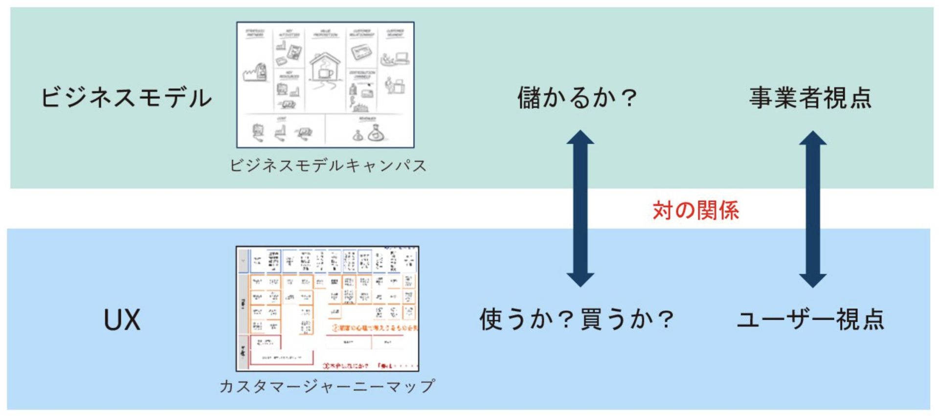 前述したビジネスモデル検証は事業主視点の検証を行うのに対し、UXデザイン検証はユーザー視点の検証を行います。新規事業・サービスの検証では、両方の視点から検討することが非常に重要です。