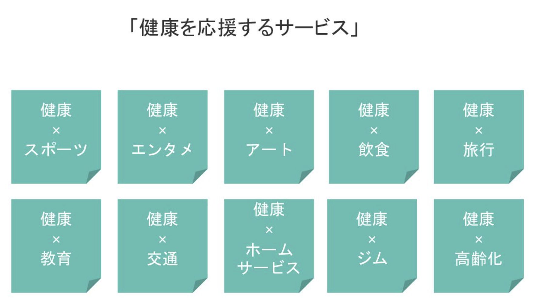 今回は「健康を応援するサービス」というテーマで、新規サービスを検討する例を用いてIdeationの手順を説明します。