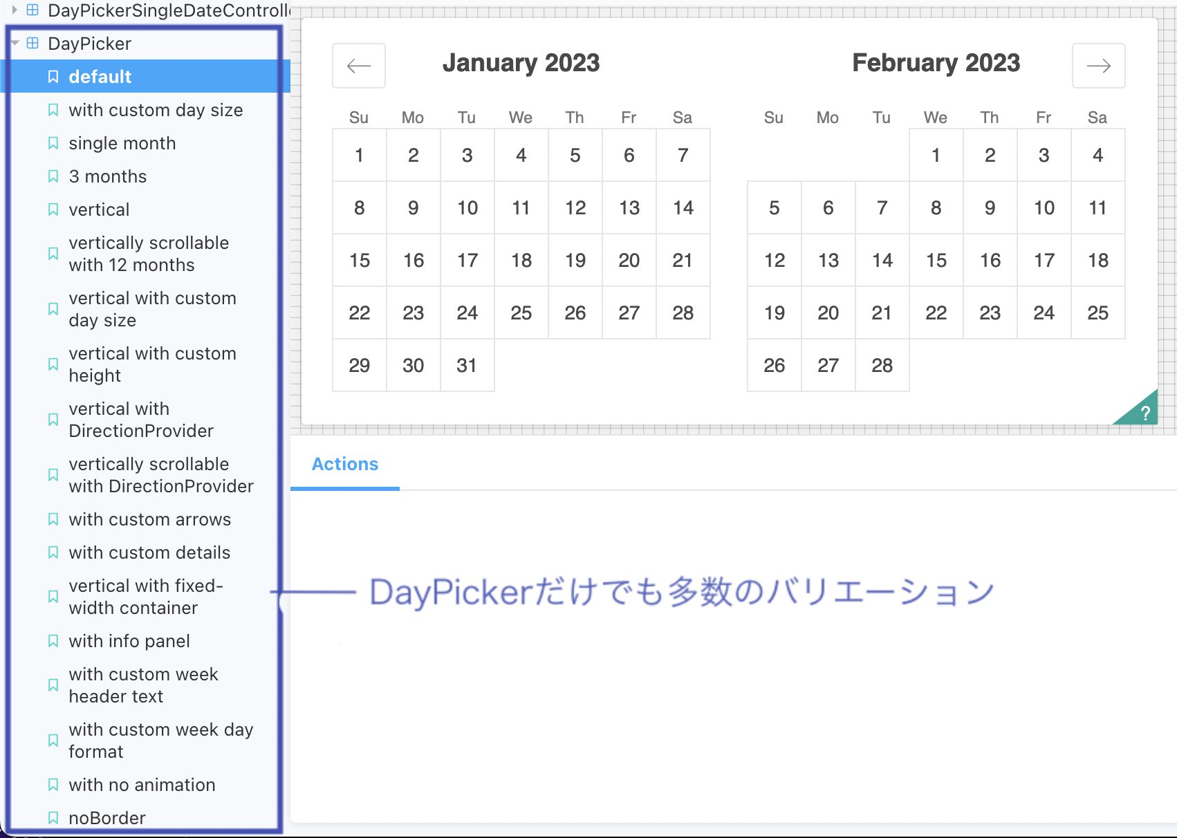 例えばAirbnbのデザインシステムの場合、DatePicker(日付を選択するためのカレンダーUI)だけでもデフォルト、1ヶ月表示、3ヶ月表示、開始日から7日を自動選択…など細かい粒度で多数のバリエーションが用意されています。