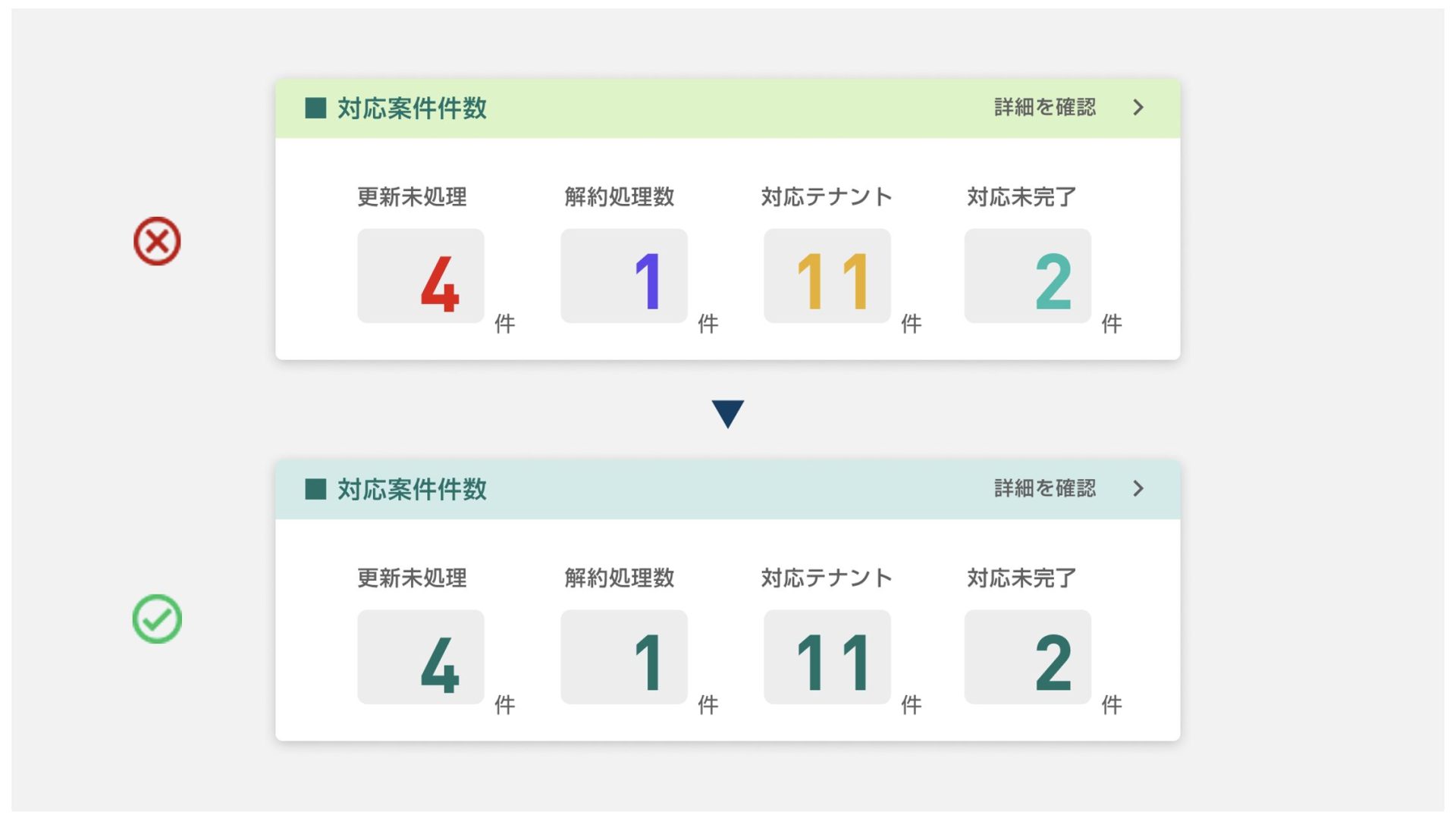 また、色を多用すると画面全体のトーンが揃わないためブランディングの観点でも悪い印象を与えかねません。