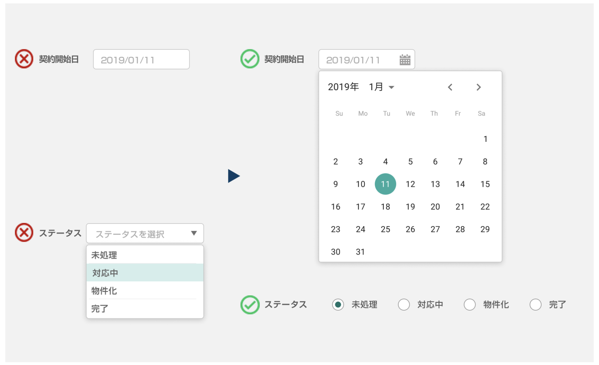 このように、安易にUIパーツを選ばず、ユーザーの負荷を軽減できる適切なものをよく考えて選ぶことが重要です。