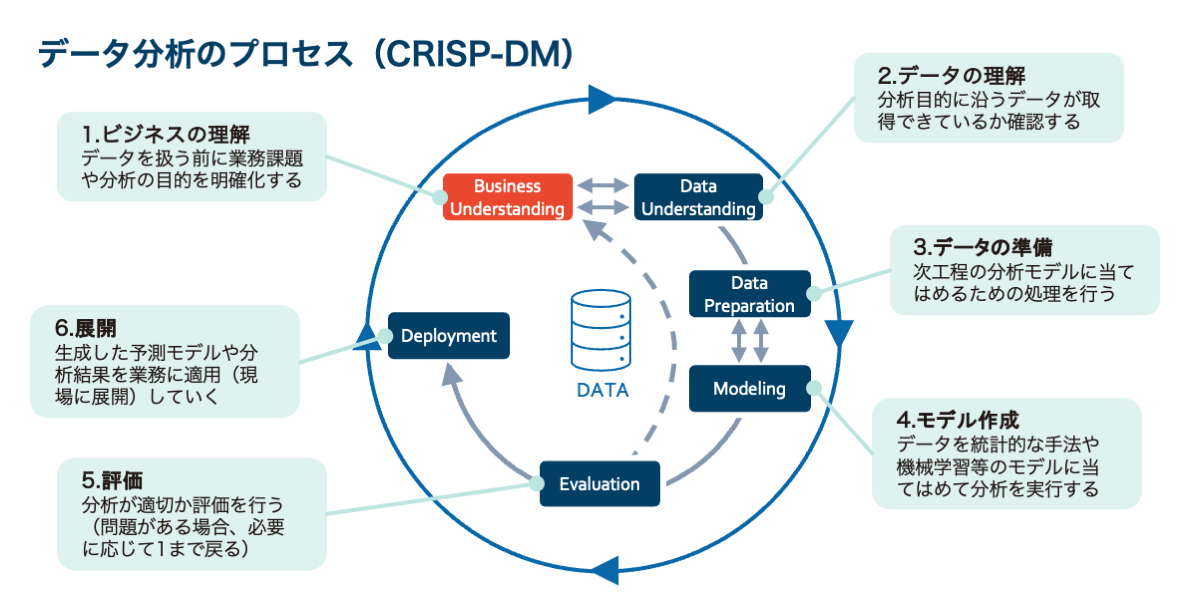 分析課題の定義が重要であることは、代表的なデータ分析プロセスのひとつであるCRISP-DMでもはじめのステップとして「ビジネスの理解」が設定されていることからもわかります。