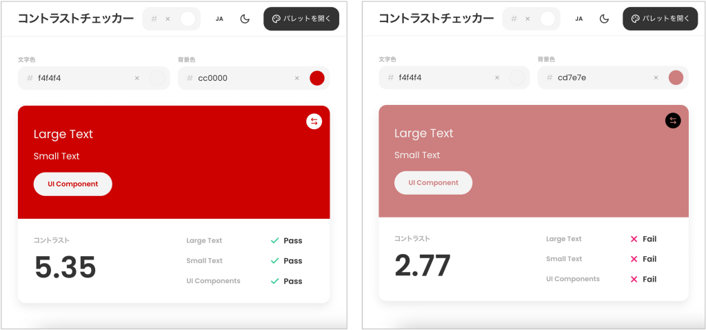 参考:コントラストチェッカー https://colorbase.app/ja/tools/contrast-checker