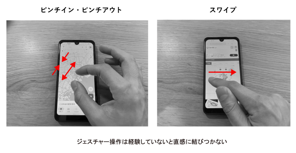 では、直感的とはいったい何なのでしょうか。タッチパネルの操作を例に考えてみましょう。タッチパネルのピンチイン(縮小)、ピンチアウト(拡大)操作は直感的と言えるでしょうか。