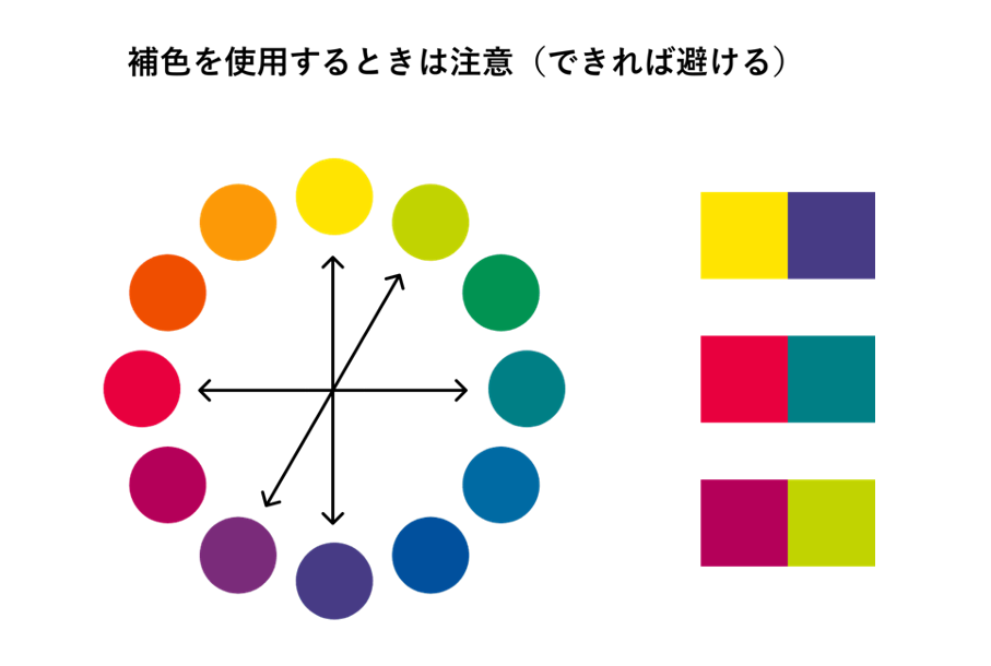 使用する色に関連して、補色を使用するときの注意点についても解説していきます。