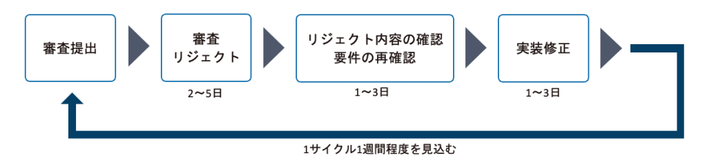 一度の審査のやり取りで、数日かかることは認識しておく必要があります。そのため、リジェクト後の修正作業や再審査の期間も含めて、リリース計画を立てましょう。余裕を持って1ヶ月前には初回審査に提出できるような計画であれば安心かと思います。