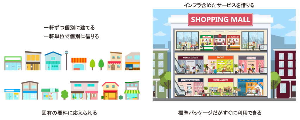 ただし、標準化されたアーキテクチャには制約が伴います。ショッピングモールに店舗を出店する場合に例えてみましょう。