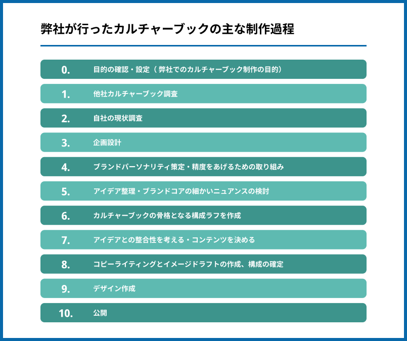 以下が、弊社が行ったカルチャーブックの主な制作過程です。