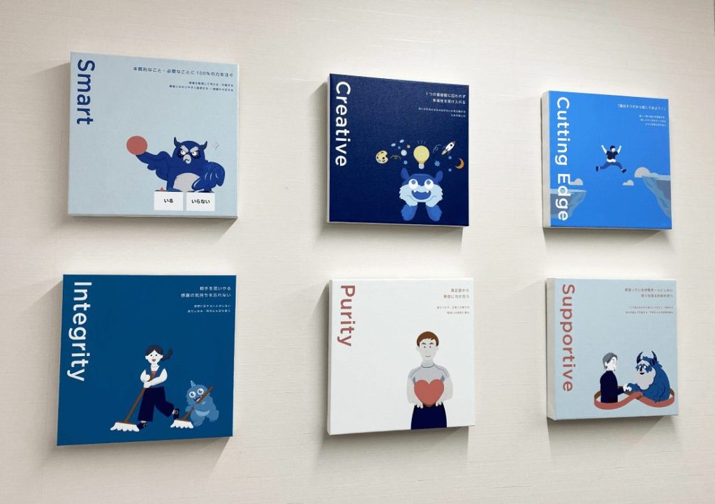 親しみやすく、社員が自然に理解できる形を目指した結果、登場キャラクターやブランドカラーなどが定着しつつあります。