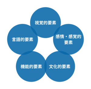 「ブランドを維持し、発展させる」とは、具体的にどのようなことを指すのでしょうか。それを理解するためには、ブランドを構成する5つの要素、「視覚的要素」「言語的要素」「感覚的・感情的要素」「機能的要素」「文化的要素」を理解する必要があります。