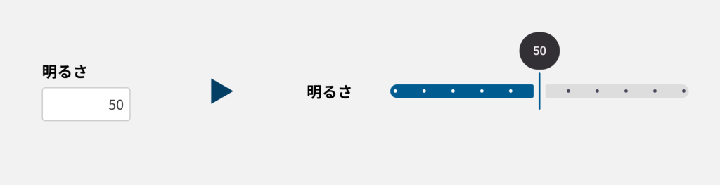 - スライダーの範囲が業務上の数値範囲と一致しない(例:進捗率が0~100%なのに、スライダーが0~10で、10%刻みになっている)。