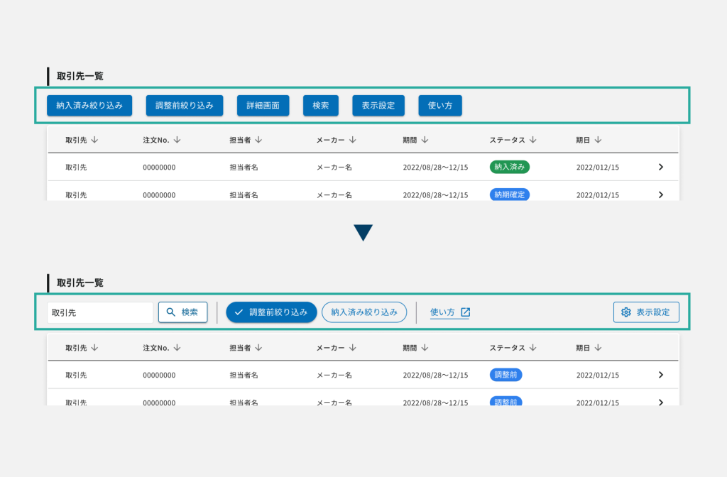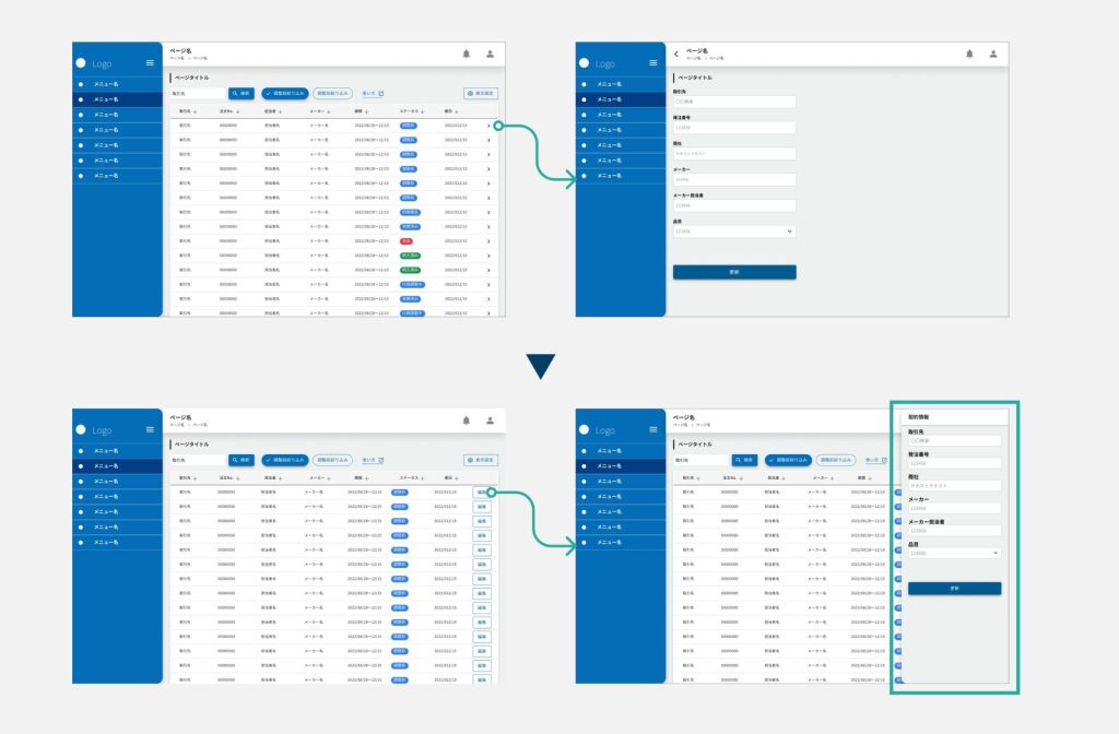 - 詳細情報の表示や追加情報の入力など、一時的な操作を行う場合は、画面遷移ではなく、ドロワーやダイアログを使用することで、現在の画面の状態を維持し、ユーザーの認知負荷を軽減できます。