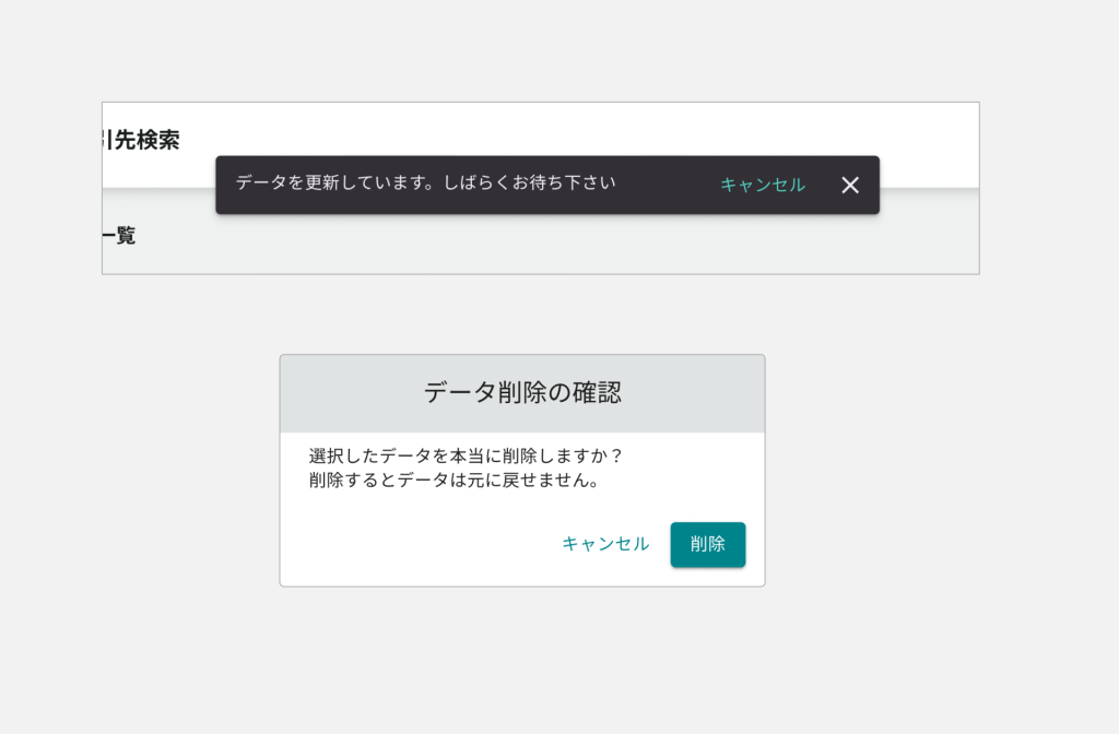- 処理に時間がかかる操作(例: データ更新)には、キャンセルボタンを提供し、ユーザーが操作を中断できるようにします。