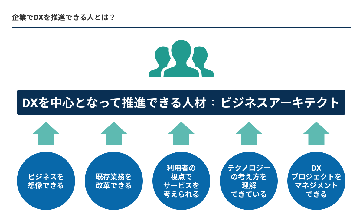 これらのスキルを持つビジネスアーキテクトが中心となることで、DXは成功へと近づきます。