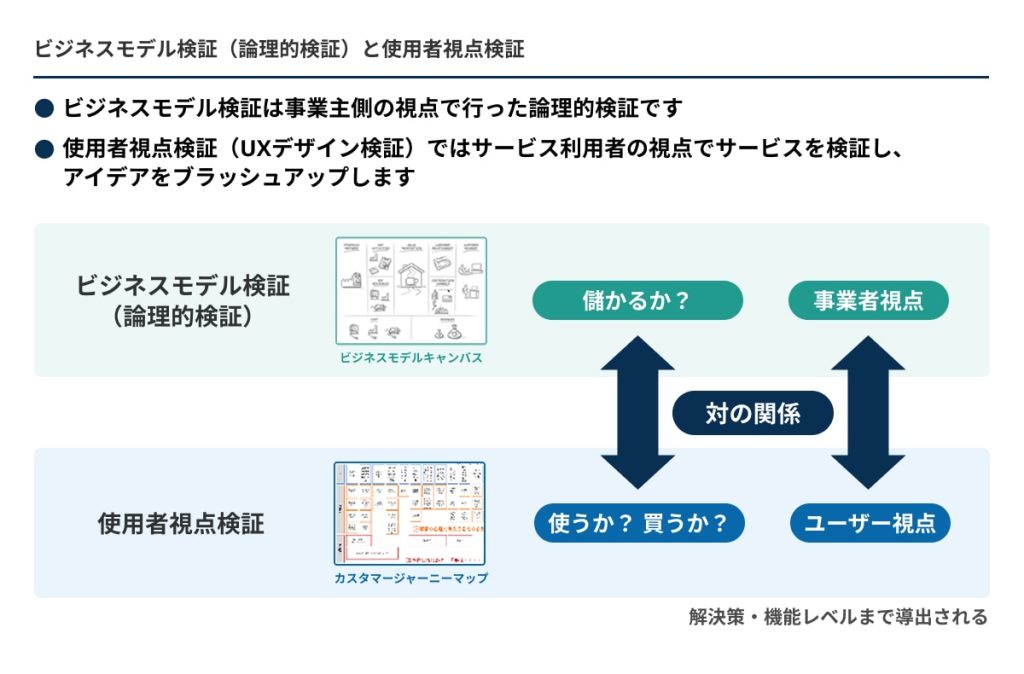 そうして出来上がったビジネスモデルを、使用者視点検証であるカスタマージャーニーマップと突合しブラッシュアップしていきます。