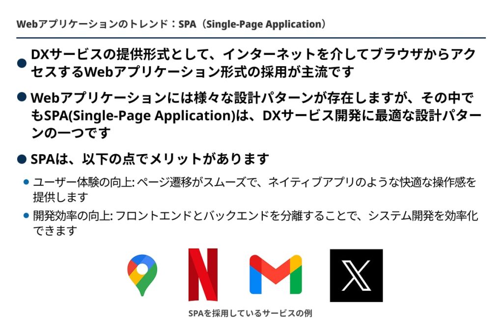 DXでは、どんなに優れた技術を導入しても、ユーザにとって使いにくかったり、価値を感じられなければ意味がありません。そのため、単なる機能実装ではなく、ユーザー体験(UX)を考慮することが求められます。UXデザインを開発プロセスに組み込む際の流れや注意点を学び、顧客満足度の高いデジタルサービスを提供するための方法を学びます。