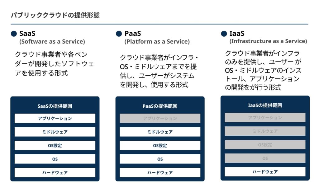 クラウドにはパブリッククラウドとプライベートクラウドが存在し、特にパブリッククラウドには目的別に使い分けるべきSaaS、PaaS、IaaSというサービスモデルがあります。