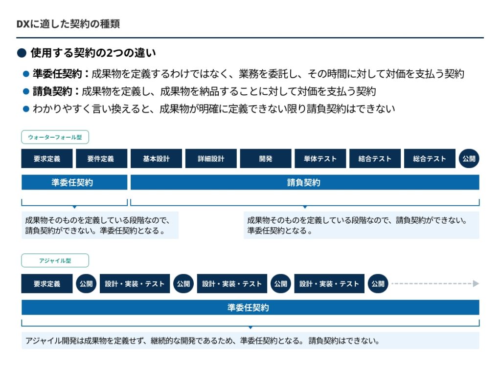 プロジェクトを円滑に進め、期待した成果を最大限に引き出すためには、適切な契約手段の選択が不可欠です。DXプロジェクトでは、アジャイル開発やPoCなど、多様な開発手法が採用されるため、従来のITプロジェクトとは異なる契約条件が求められます。契約手段を誤ると、プロジェクトの遅延や予算超過、成果物の品質低下など、重大なリスクを招く可能性があります。DXプロジェクトにおける見積もり、発注、契約の基本的な考え方と注意点を解説し、プロジェクトを成功に導くための知識を提供します。