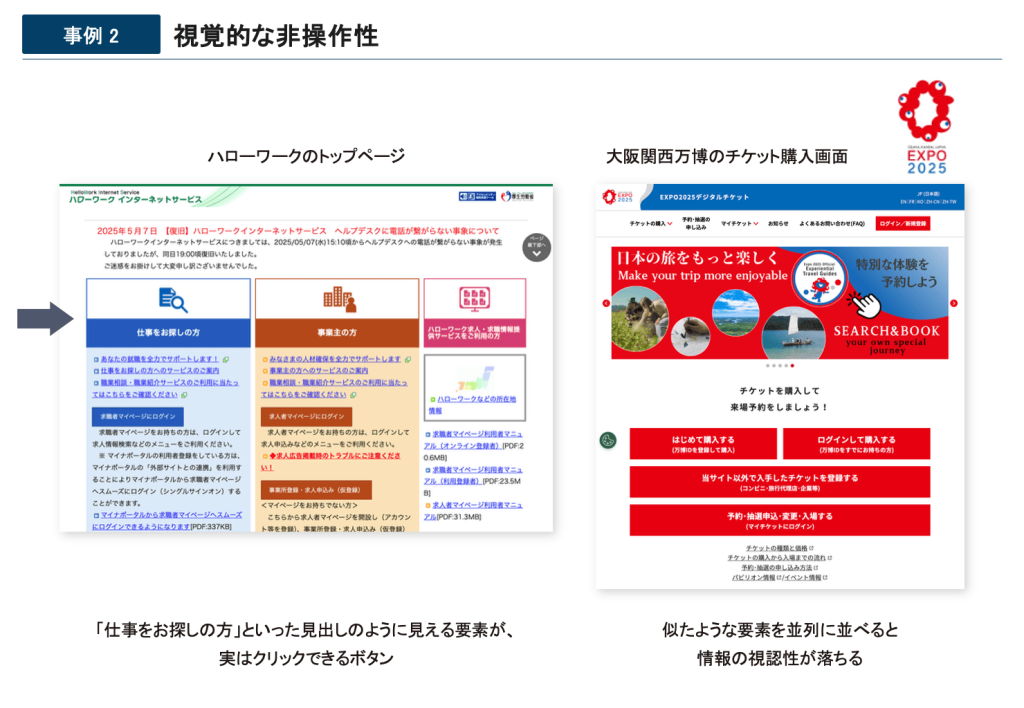 このように、見た目と機能が一致しないUIは、ユーザーを混乱させ、情報の視認性を低下させます。
