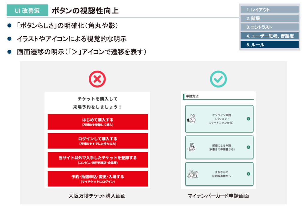 この問題を解決するためには、ボタンの「ボタンらしさ」を明確にすることが重要です。